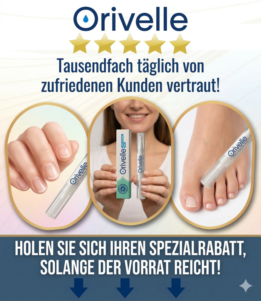 Das Produkt funktioniert durch einen Mechanismus, der den Pilzzyklus auf molekularer Ebene unterbricht und das Wachstum eines neuen, gesunden und infektionsfreien Nagels fördert. Orivelle wurde von Experten für ganzheitliche Gesundheit entwickelt und bekämpft nicht nur Verfärbungen und Brüchigkeit, sondern stärkt auch die natürliche Barriere von Haut und Nägeln, wobei bereits nach 5 bis 7 Tagen erste sichtbare Ergebnisse erzielt werden.